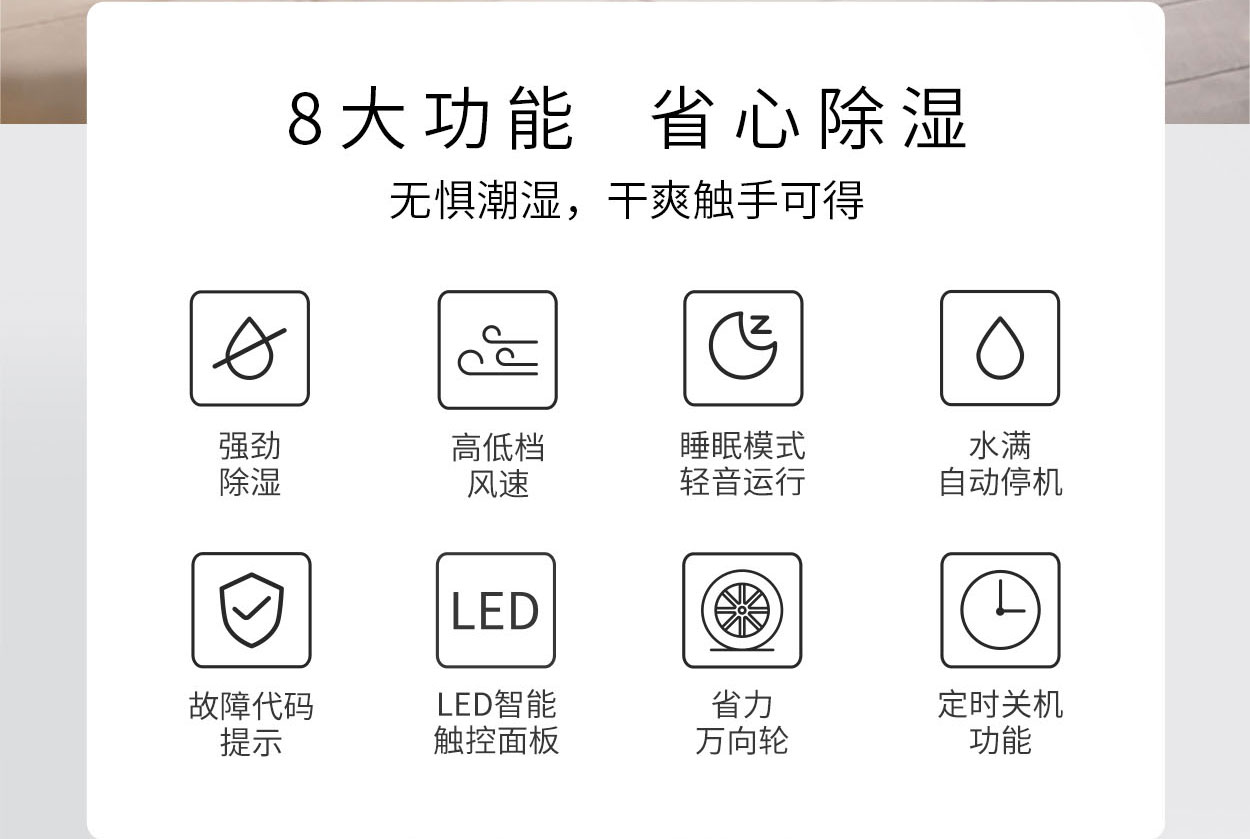 推荐面积 :10-25m²除湿量: 23L/天,WIFI智能APP远程控制